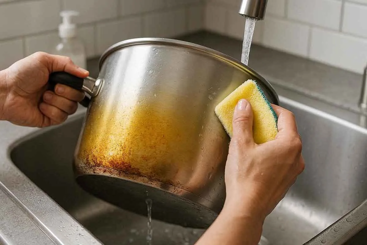 نحوه پاک کردن زردی بیرون قابلمه استیل با روشهای ساده