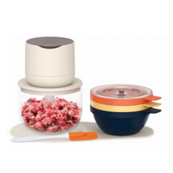 ظرف این دستگاه با ظرفیت 0.8 لیتر از پلاستیک فشرده و مقاوم ساخته شده و به دلیل قابلیت شستشو در ماشین ظرفشویی، نظافت آن بسیار آسان است. تیغههای استیل ضدزنگ و 4 پرهای این خردکن، کارایی بالایی در خرد کردن مواد غذایی مختلف از جمله یخ دارند. همچنین، این دستگاه مجهز به دو سرعت عملکرد و قابلیت عملکرد پالس است که به شما امکان میدهد تا مواد غذایی را با دقت بیشتری خرد کنید.