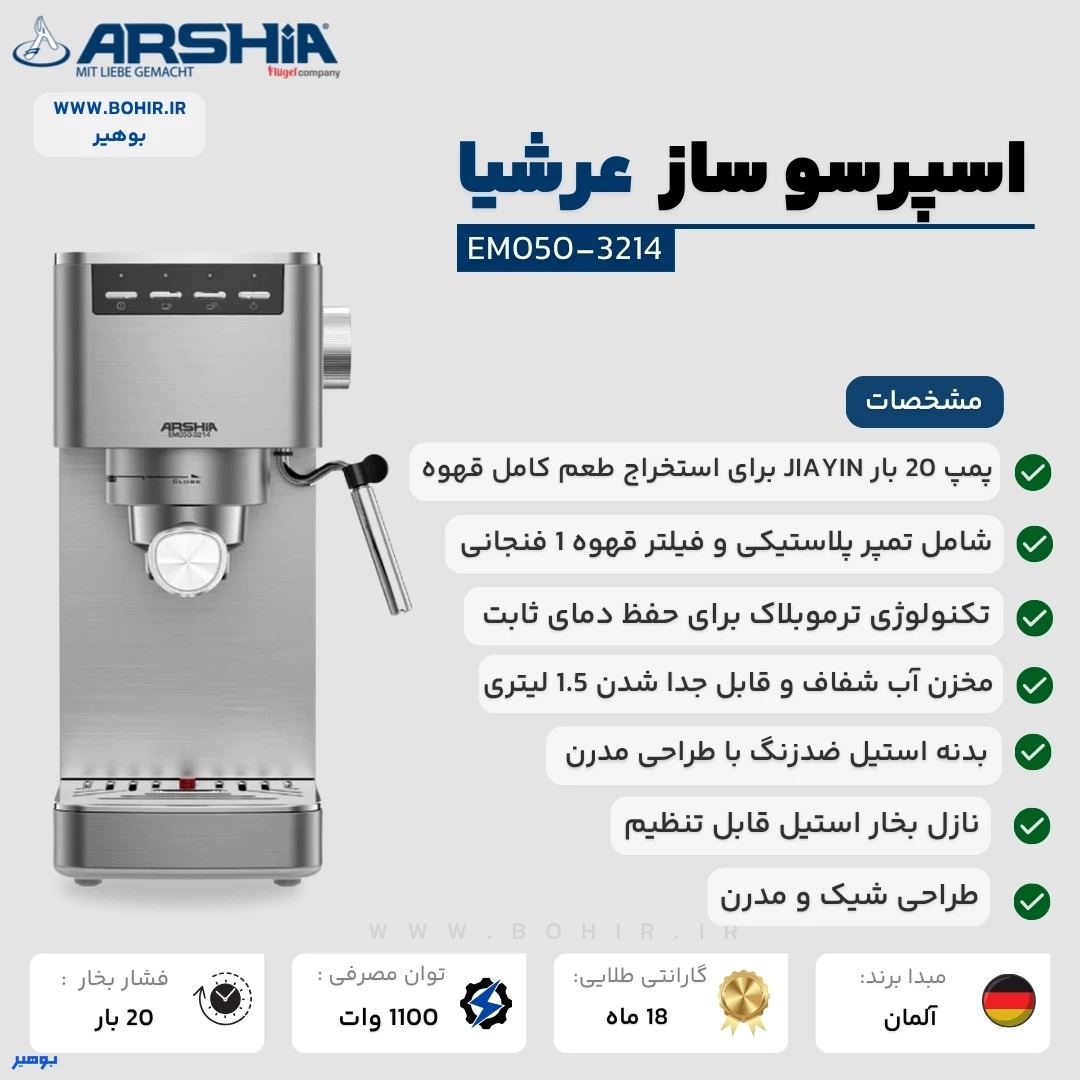 طراحی اسپرسو ساز عرشیا مدل EM050-3214