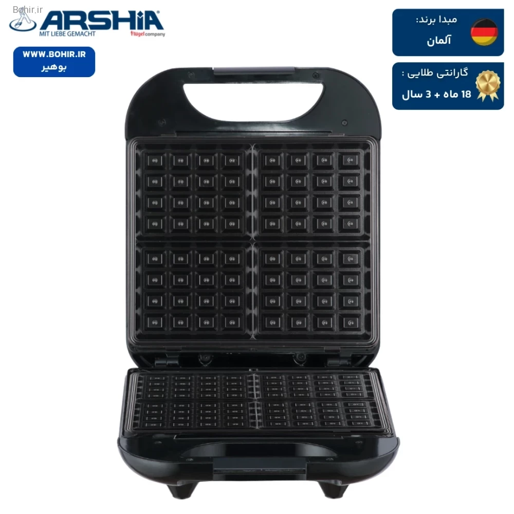 - طراحی جمعوجور و ایمن: ساندویچ ساز 2 کاره عرشیا با پایههای ضد لغزش و بدنه مقاوم در برابر حرارت، از ایمنی بالاتری برخوردار است و میتوانید به راحتی آن را در هر فضای کوچک ذخیره کنید.