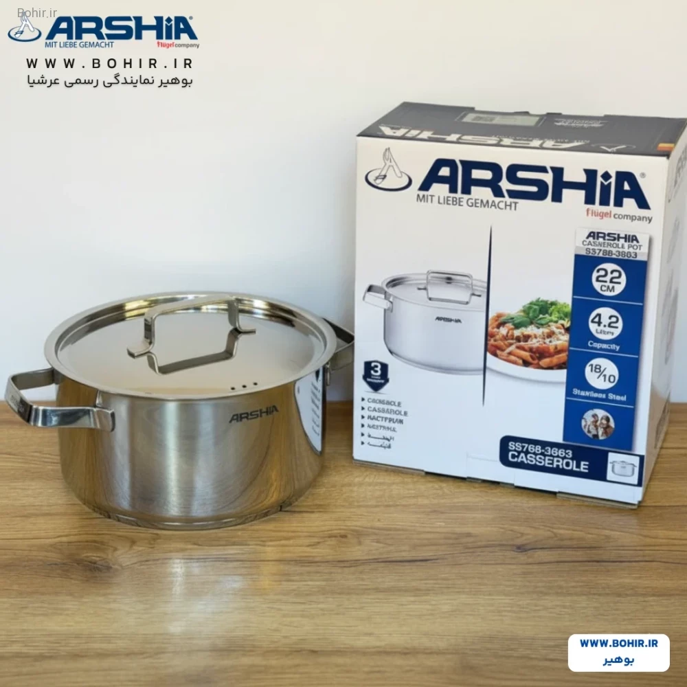 در بوهیر، اصالت کالا کاملاً تضمین شده و محصول دقیقاً همان است که سفارش میدهید. ارسالها سریع و بدون دردسر انجام میشود و برای اطمینان خاطر، ۷ روز ضمانت تست کیفیت در اختیار شماست. علاوه بر این، با خرید محصولات عرشیا از بوهیر، از ۱۸ ماه کارت طلایی تعویض و ۳ سال خدمات پسازفروش عرشیا سرویس بهرهمند میشوید. بوهیر تجربه یک خرید اینترنتی مطمئن با قیمت مناسب را برای شما فراهم میکند تا با آرامش و اعتماد، به آشپزخانهتان تجهیزات باکیفیت اضافه کنید.