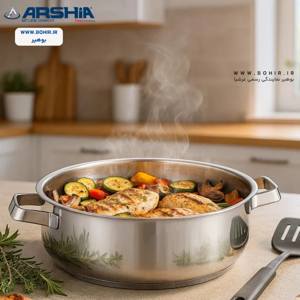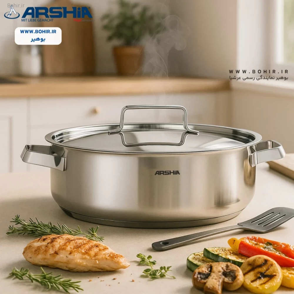 ماهیتابه دو دسته 28 سانت استیل عرشیا مدل SS768-3670 با طراحی مدرن و کیفیت ساخت عالی به یکی از انتخابهای محبوب در آشپزخانهها تبدیل شده است. بدنه این ماهیتابه از استیل ضدزنگ مقاوم ساخته شده که علاوه بر افزایش دوام، در برابر خوردگی و تغییرات دمایی بسیار مقاوم است. پایه آلومینیومی یکپارچه آن موجب توزیع یکنواخت حرارت میشود که برای پخت سریع و یکنواخت ایدهآل است. سطح خارجی براق و داخلی مات آن، علاوه بر زیبایی، تمیزکاری را نیز بسیار آسان میکند. دستهها و دستگیرههای ارگونومیک این ماهیتابه، راحتی استفاده را در حین پخت فراهم میکند. این ماهیتابه مناسب برای اجاقهای گاز، برقی و القایی است و به راحتی میتواند برای انواع پخت و پز استفاده شود.