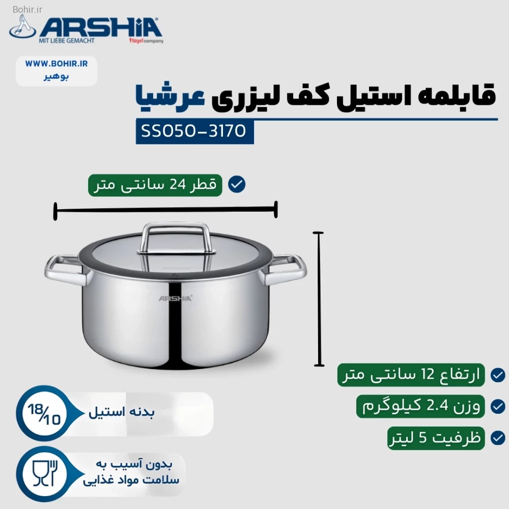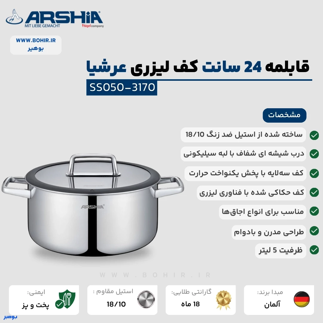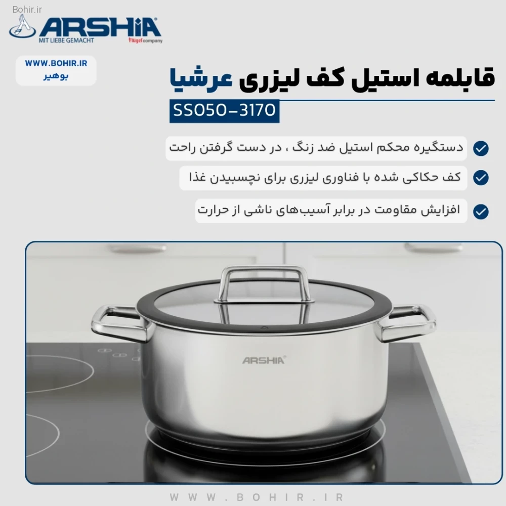 عملکرد و ویژگی های قابلمه تک استیل کف لیزری عرشیا ss050-3170