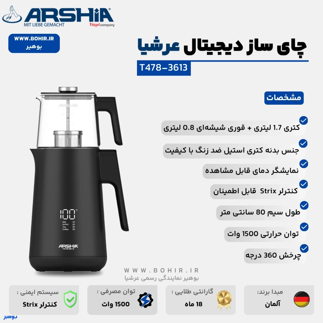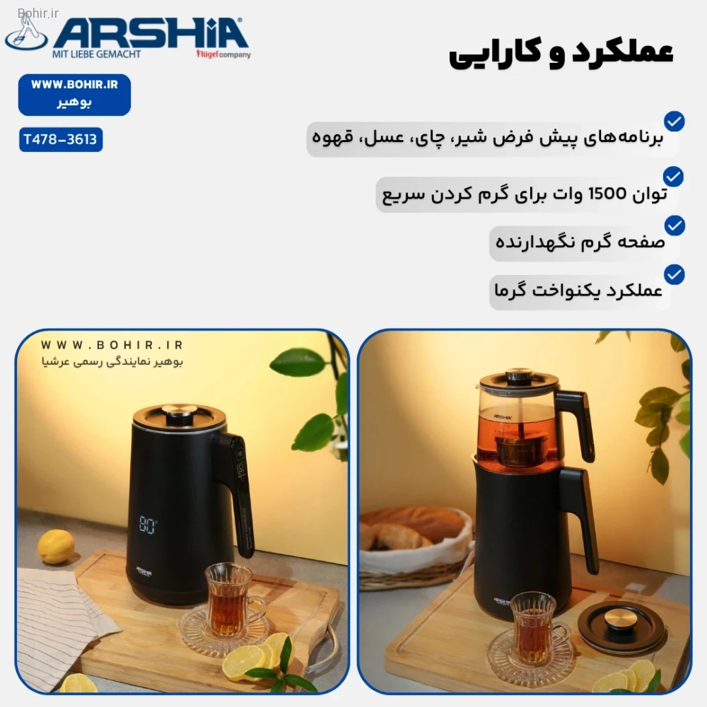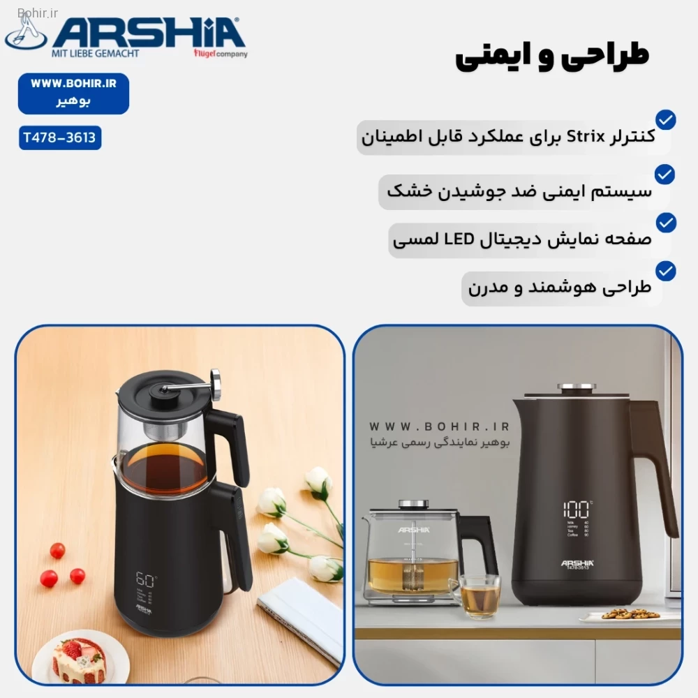 طراحی و ویژگی های چای ساز عرشیا T478-3613