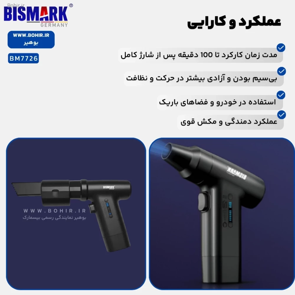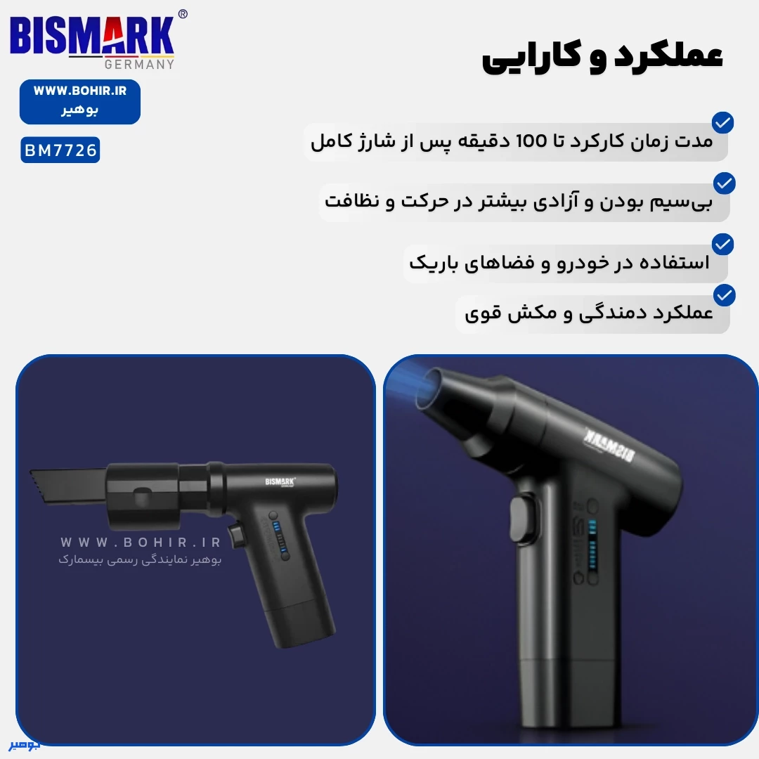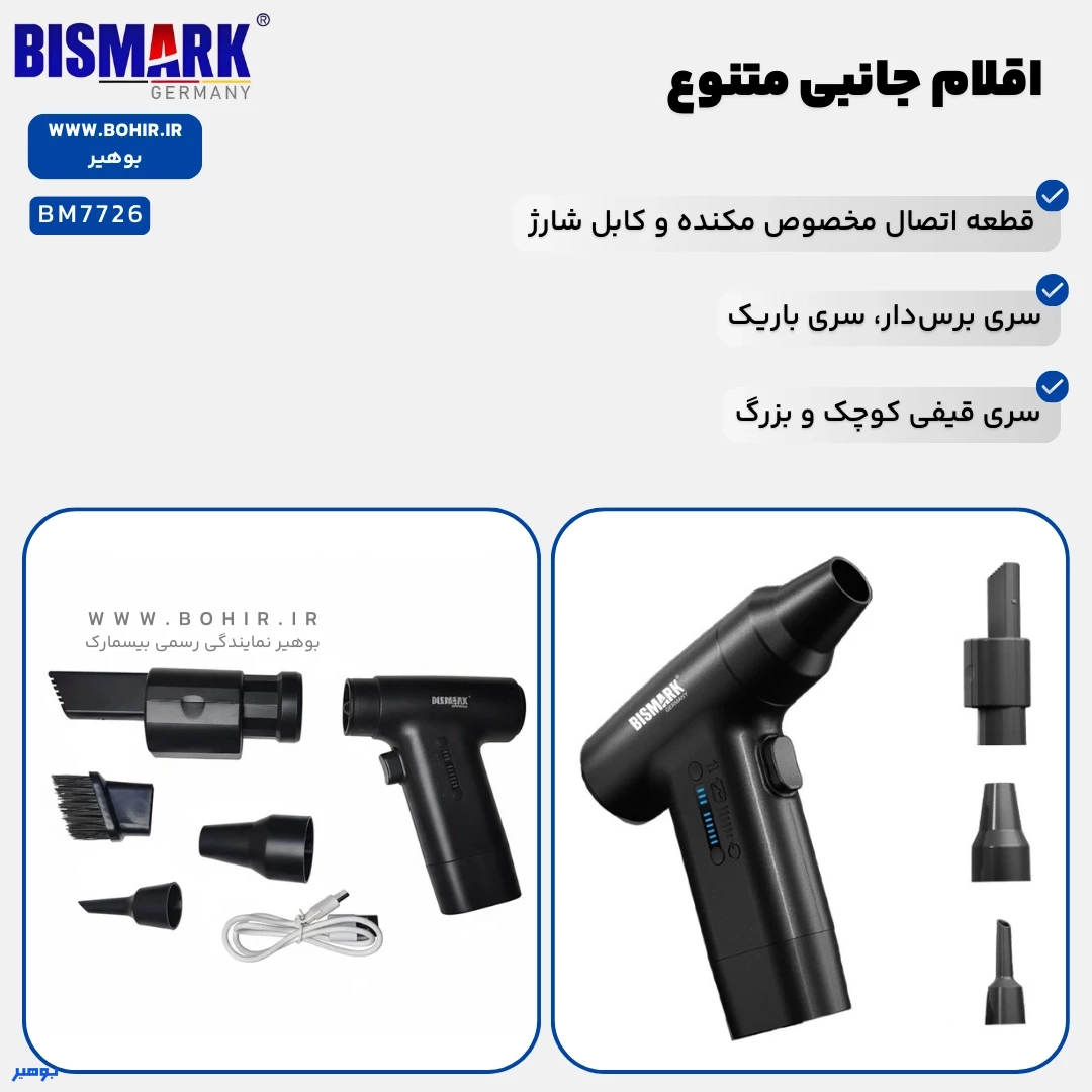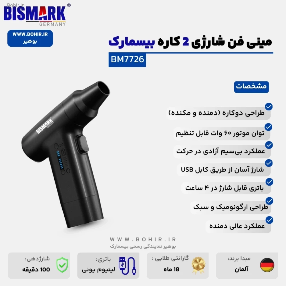 مینی فن بیسمارک BM7726 با قابلیتهای دمندگی و مکش، به شما این امکان را میدهد که از آن در شرایط مختلف و برای انجام کارهای متنوع استفاده کنید. سریهای متنوع همراه این محصول، از جمله سریهای برسدار، باریک و قیفی، استفاده از آن را در فضاهای باریک و برای تمیزکاری دقیق و حساس آسان میکند. این دستگاه برای استفاده در خودرو، کیبورد، یا حتی تمیز کردن گوشهها و دریچهها عالی است. بهطور کلی، مینی فن BM7726 انتخابی مناسب برای کسانی است که به دنبال دستگاهی چندمنظوره با قیمت مناسب هستند.