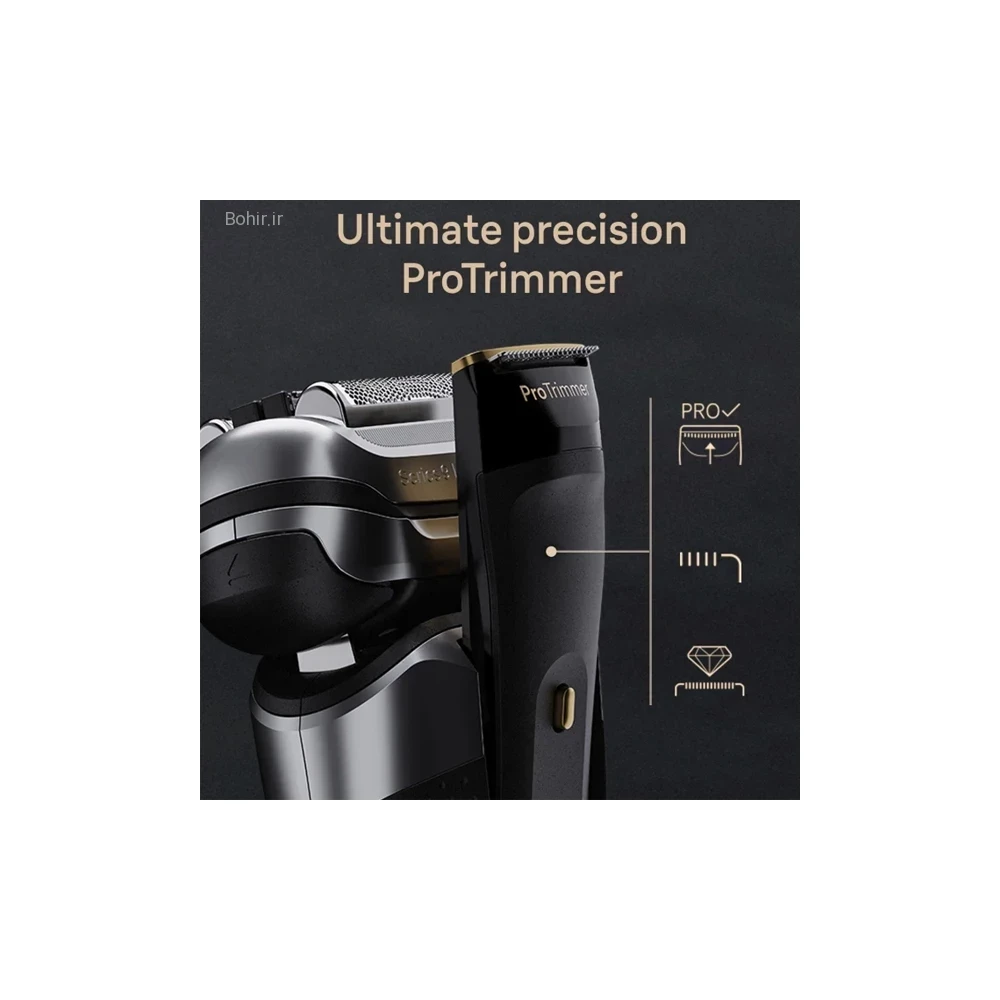 ریش تراش براون مدل 9569CC با ۵ تیغه پیشرفته و تکنولوژی SyncroSonic توانایی اصلاح با دقت بالا حتی روی موهای بلند یا ضخیم را دارد. این مدل بهخوبی قادر به اصلاح ریشهای یک، سه یا حتی هفت روزه است، بهطوری که هیچ مو یا ریزش باقی نمیماند. همچنین، ProTrimmer داخلی با فولاد جراحی، اصلاح دقیقی برای مناطق حساس مانند زیر بینی و خط فک فراهم میکند. اصلاح فویلی این دستگاه تجربهای نرم و راحت را به پوست ارائه میدهد، بدون ایجاد حساسیت یا سوزش.
