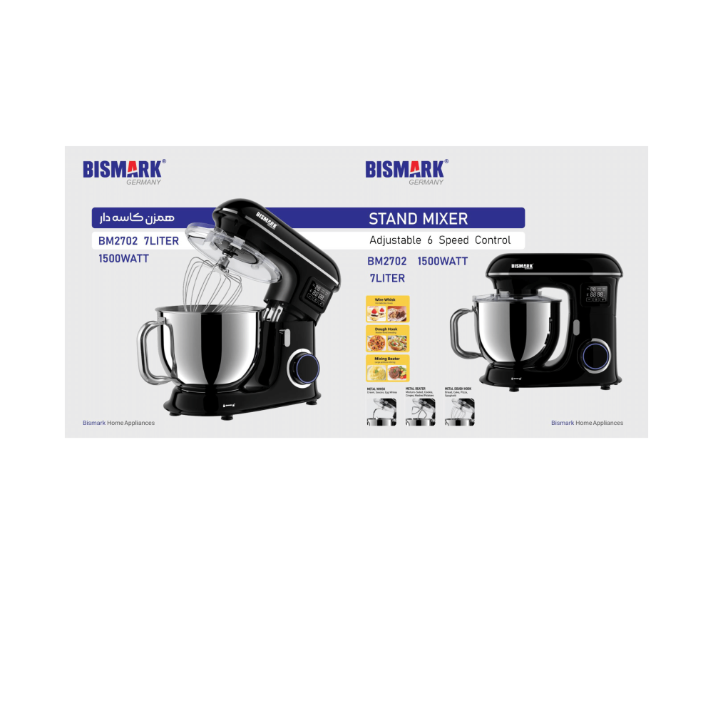 طراحی و ویژگی های همزن کاسه دار حرفه ای 7 لیتری بیسمارک مدل BM2702