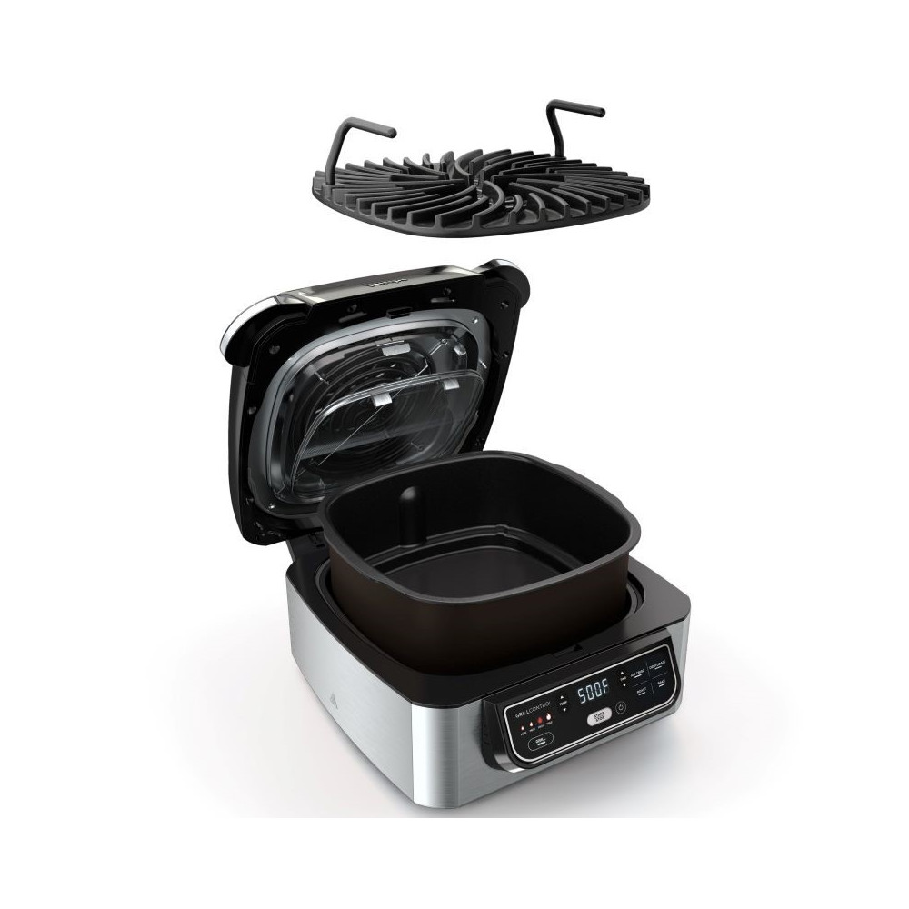 سرخ کن نینجا AG 301 جهت استفاده از برنامه گریل، مجهز به یک صفحه اختصاصی است که بر روی محفظه سرخ کن قرار میگیرد و ۲ دستگیره جهت جابجایی آسان دارد.