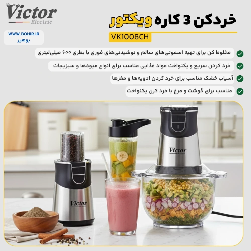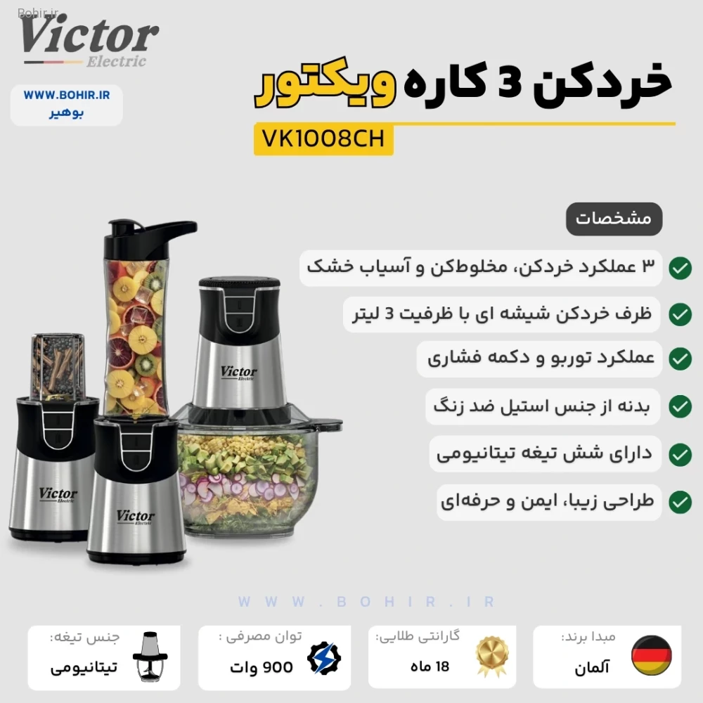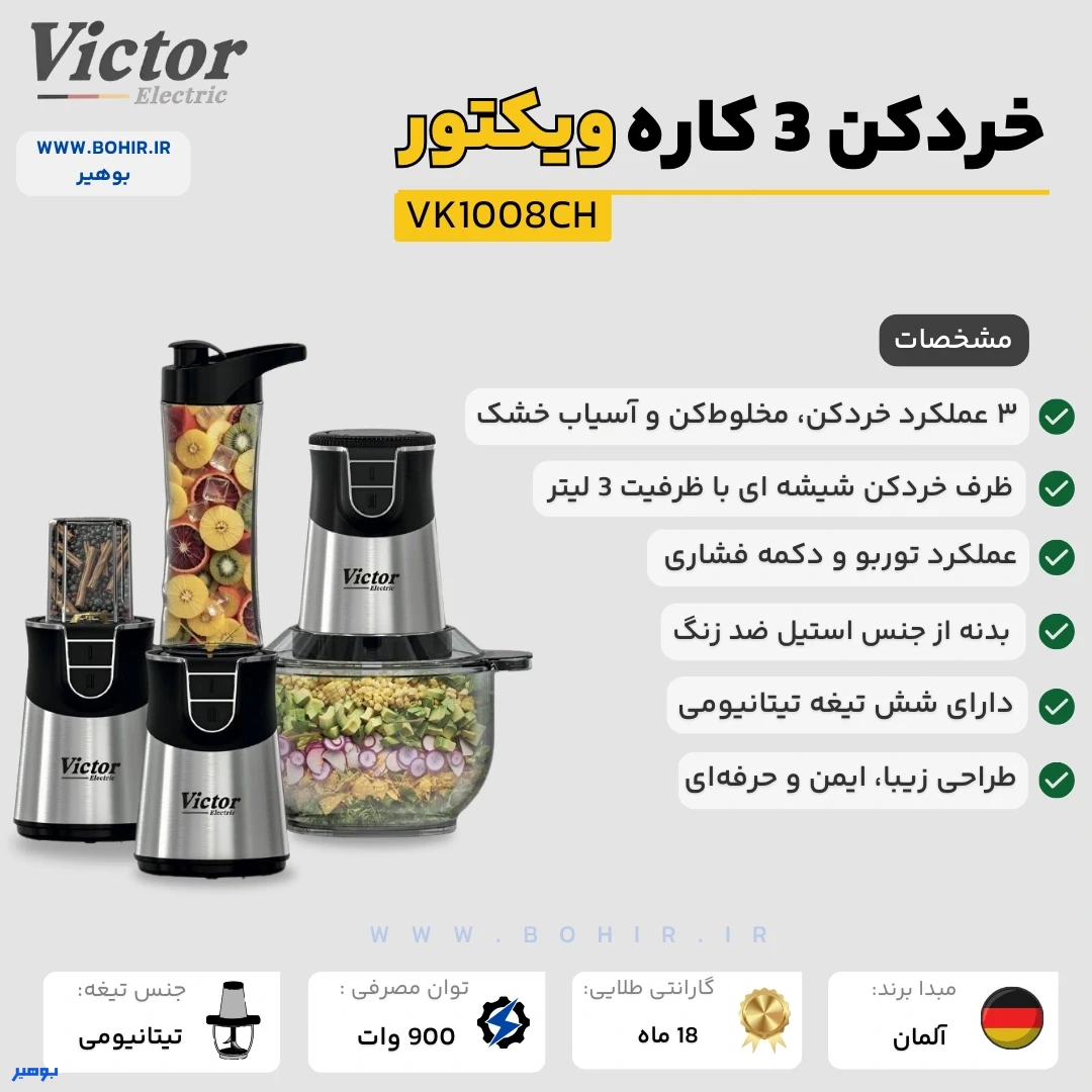 عملکرد و ویژگی های فنی خردکن 3 کاره ویکتور مدل VK1008CH